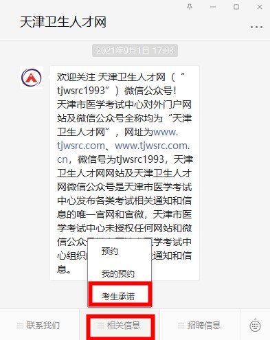 天津卫生人才网微信公众号承诺书填写入口截图