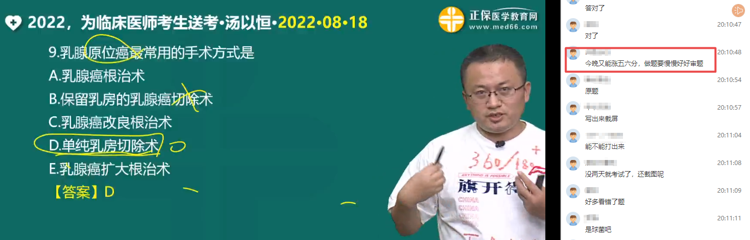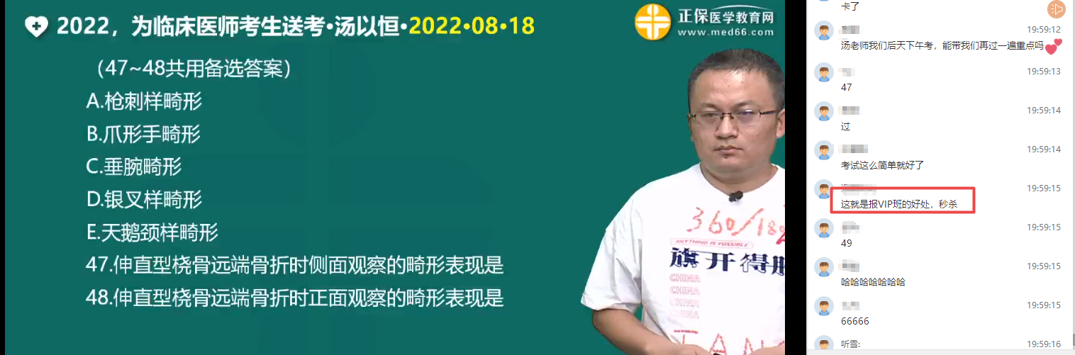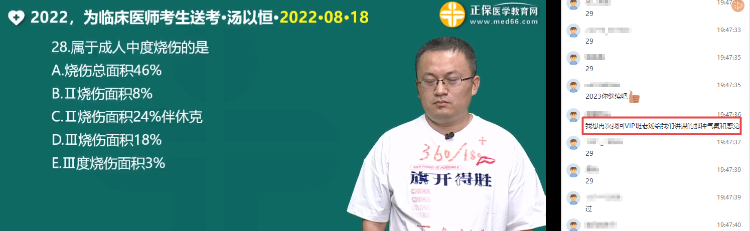 考前1天,全国临床医师考生都在汤以恒老师直播间!做完考前50题!轻松冲刺360+/180+。错过直播的同学可以查看回放视频哦>>