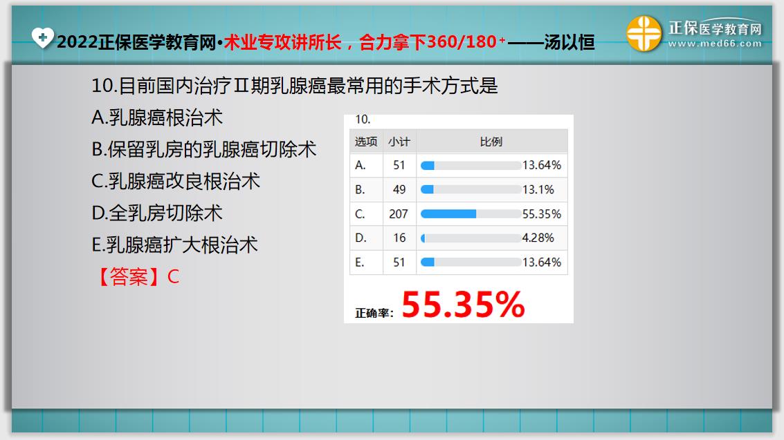 2022临床执业医师入学测评正确率55.35%(乳腺癌术式简化记忆)如下,参加2022年临床执业医师考试的同学,快来看看自己是否可以答对这道题吧!详情如下: