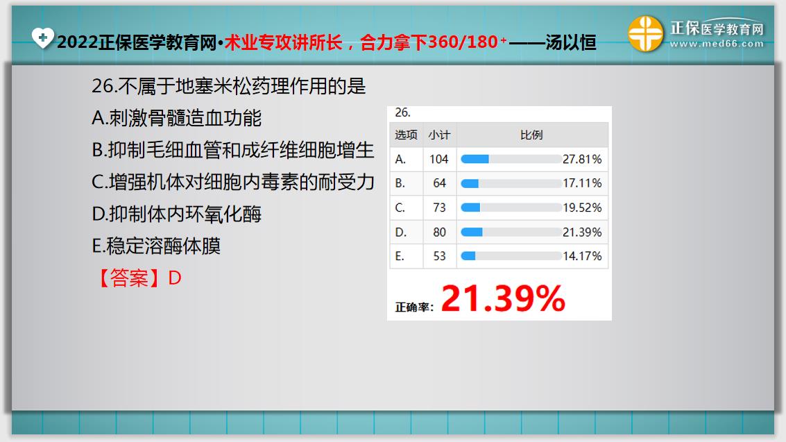 2022年临床医师【入学测评】模考正确率21.39%模考题如下,参加2022年临床执业医师考试的同学,快来看看自己是否可以答对这道题吧!详情如下:
