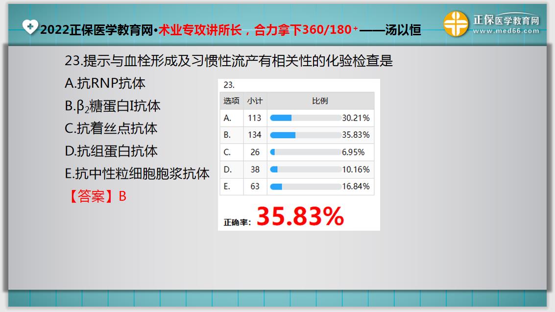 提示与血栓形成及习惯性流产有相关性的化验检查是?35.83%正确率模考题如下,参加2022年临床执业医师考试的同学,快来看看自己是否可以答对这道题吧!详情如下: