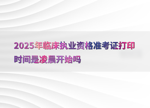 2025年临床执业医师综合笔试考试时间为8月23日至24日,准考证打印时间因地区而异,但均不安排在凌晨。