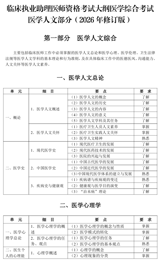 2026年临床助理医师《医学人文》大纲修订版下载