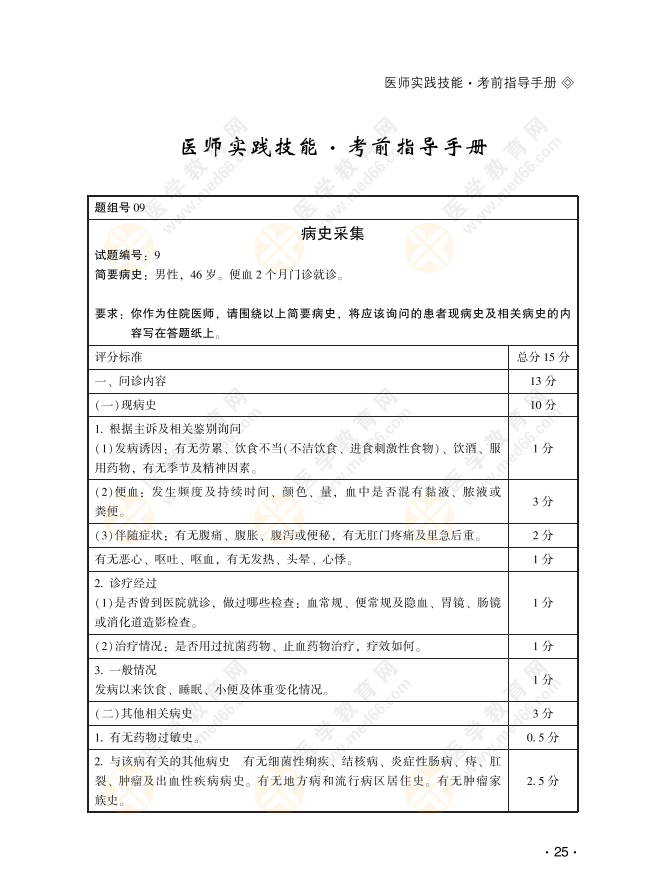 临床实践技能病史采集9号习题:男性,46岁。便血2个月门诊就诊。具体内容医学教育网编辑整理分享如下,希望对正在备战2022年医师实践技能考试的考生有所帮助!