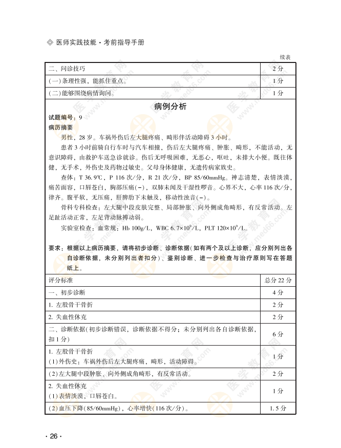 以下甄选病例分析题节选自《2022年临床技能考前指导手册》!