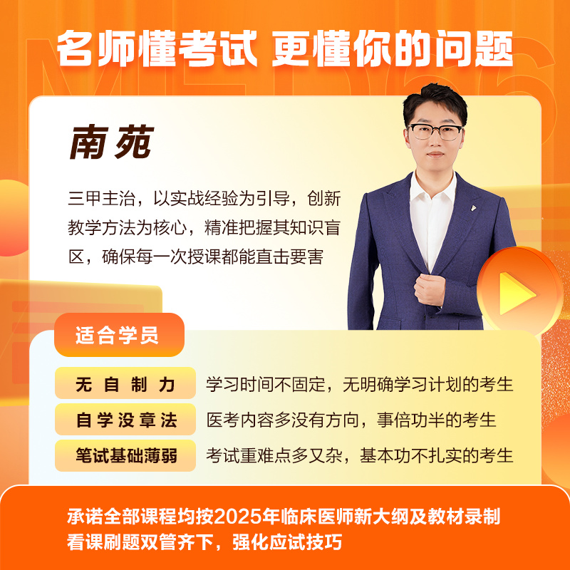 “2025临床内科专项刷题课”从零开始, 3大阶段课程阶梯式推进,系统性地拆解每一个知识点,逐步建立起扎实的基础。通过深入浅出的讲解和实例分析,我们将帮助您识别并弥补自己的知识短板,真正做到全面覆盖、不留死角。