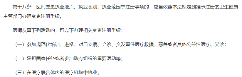 为多点执业打开了方便之门!这一点主要体现在《医师法》对医师执业注册提出了一些新规定。