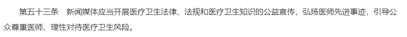 尤其需要指出的是,媒体在医患关系营造方面的作用不容忽视,本法规定新闻媒体报道医疗卫生事件应当做到真实、客观、公正等。这种规定能够促进医患互信、维护医师合法权益。