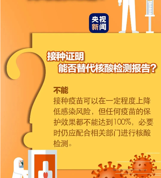 新冠疫苗接种证明可以代替核酸检测报告吗?相信不少人存在疑问,医学教育网编辑将官方回答分享如下: