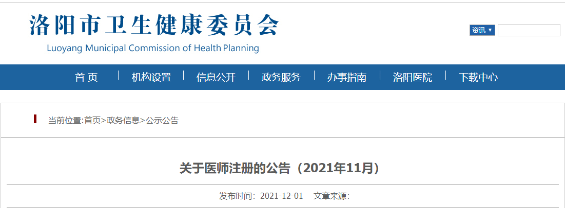 @洛阳考点医师请注意!2021年11月医师注册名单已公布!