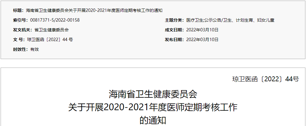 关于海南省2020-2021年度定期考核工作通知