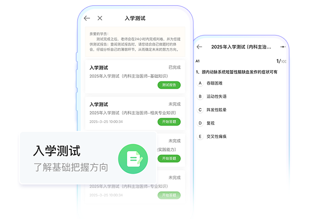 考生入学时进行的测试,会根据测试结果,为考生量身定制专属的学习计划,确保学习更具针对性和有效性。