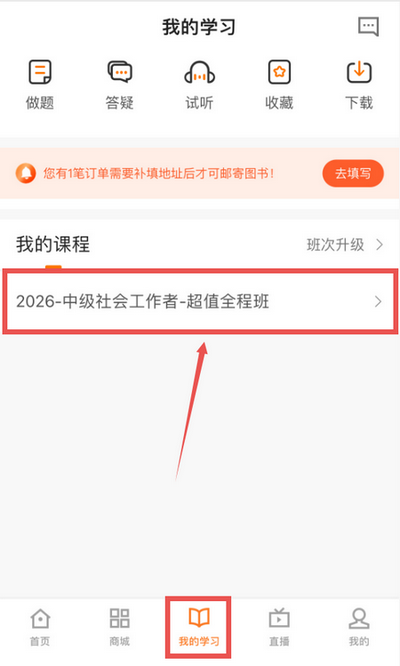 第三步:点击“我的学习”可以看课学习。