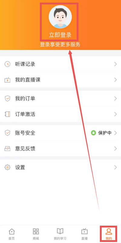 第二步:使用您购课的帐号、密码或使用手机号验证码登录。