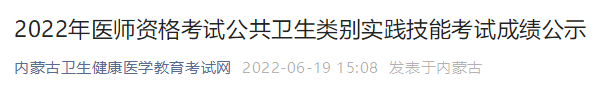 6月18日内蒙古考区2022年医师资格实践技能(公卫类别)成绩公示,医学教育网老师为大家整理总结如下,希望可以帮助到各位: