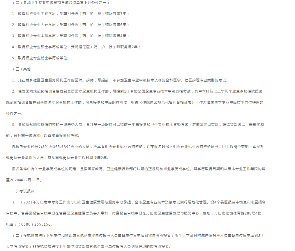 浙江舟山发布了2021年度卫生专业技术资格考试报名工作的通知,为了方便各位考生及时了解,医学教育网小编专门整理了具体通知内容如下,请各位考生及时确认!