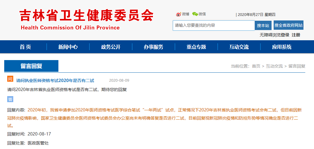 临床、中医类别具有规定学历中医专业执业医师资格考试:2020年11月14日和11月15日上午9:00—11:00,下午14:00—16:00.