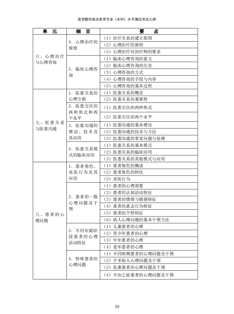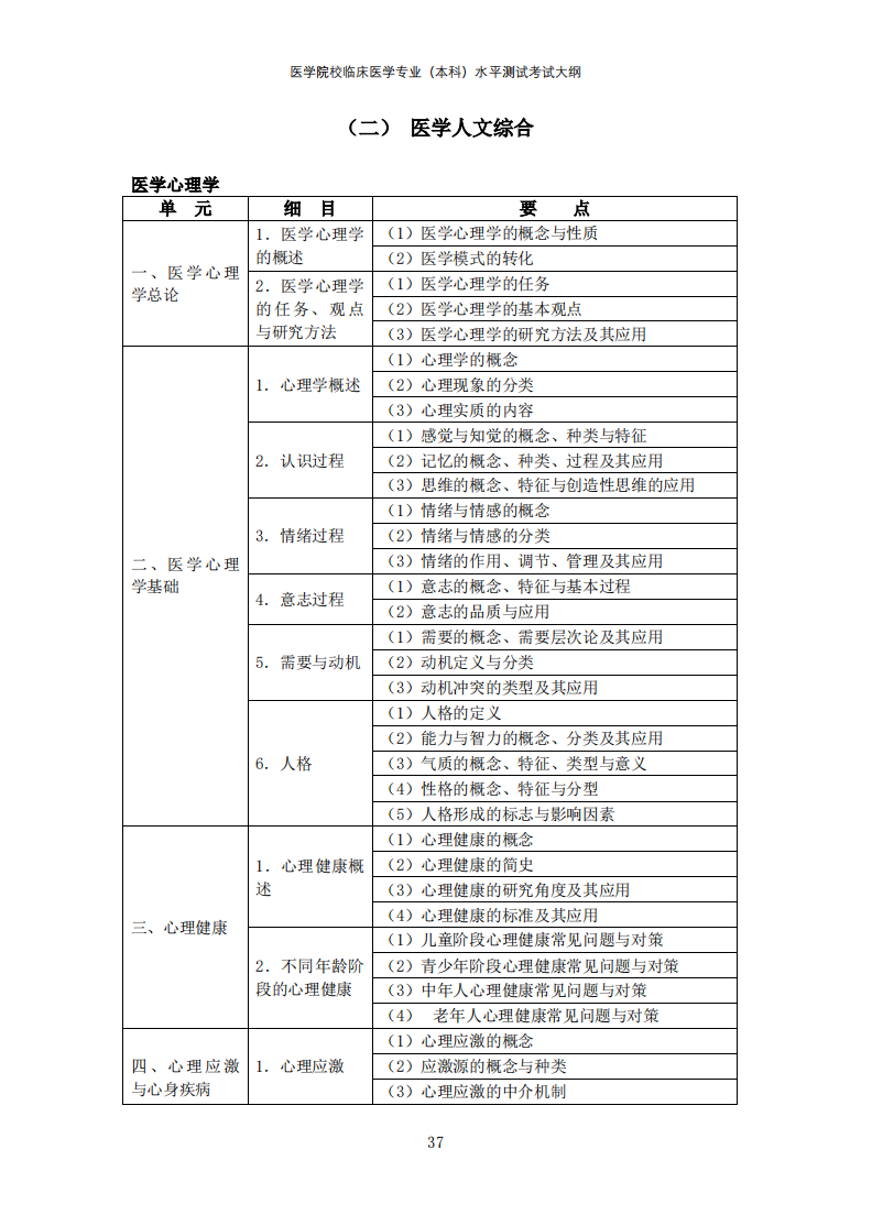 医学院校临床医学专业(本科)水平测试考试大纲(2022年版)↓↓↓
