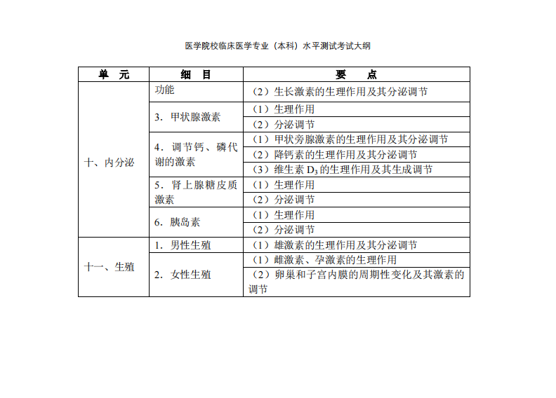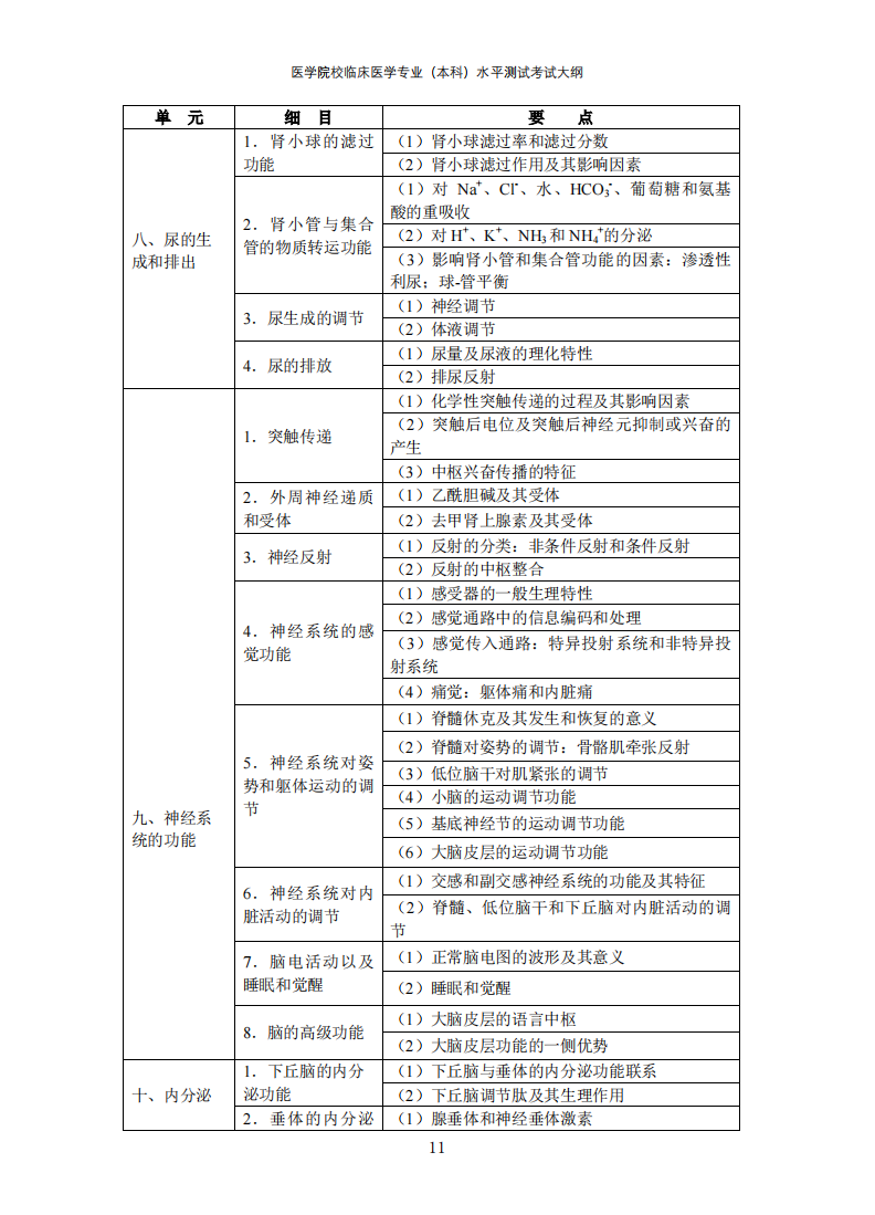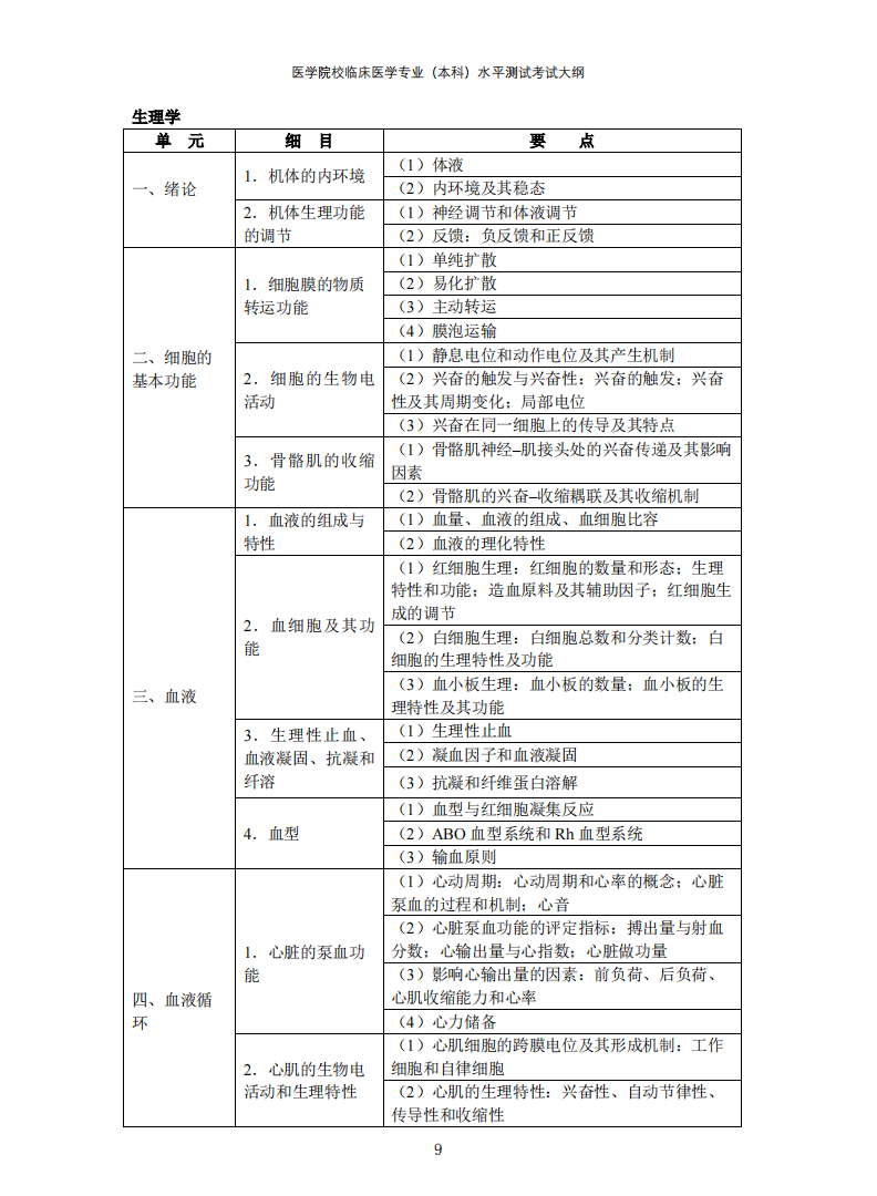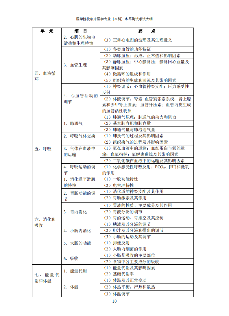 医学院校临床医学专业(本科)水平测试考试大纲(2022年版)