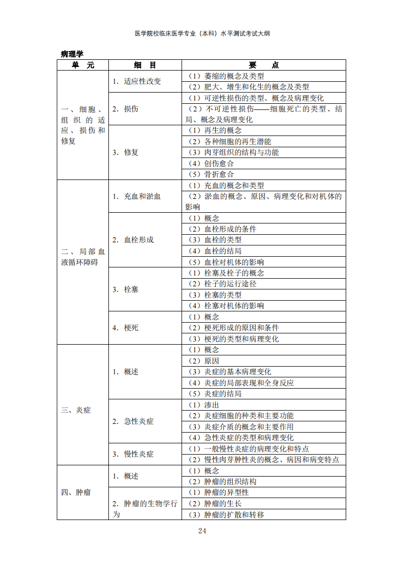 医学院校临床医学专业(本科)水平测试考试大纲(2022年版)