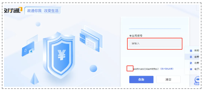 并勾选下方“同意签订《商户服务协议》”后点击查询即可,网报号在报名系统中打印的《报