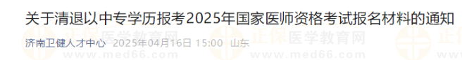 以中专学历报考2025年国家医师资格考试的报名材料即将清退,现将相关事项通知如下:
