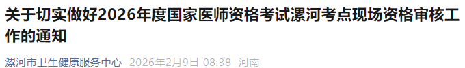 根据上级有关要求,现将漯河考点2026年国家医师资格考试现场资格审核工作有关事宜通知如下: