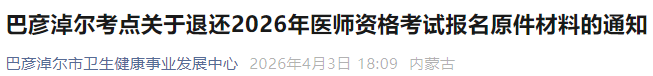 速看!内蒙古巴彦淖尔2026年医师资格考试报名原件开始退回!以下为内蒙古巴彦淖尔考点官方提醒,请相关考生仔细查看,按时领取报名原件!