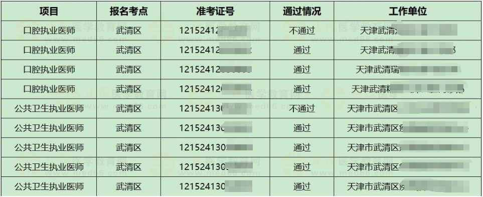 武清区6月15日医师资格实践技能考试成绩(口腔、公共卫生)公示