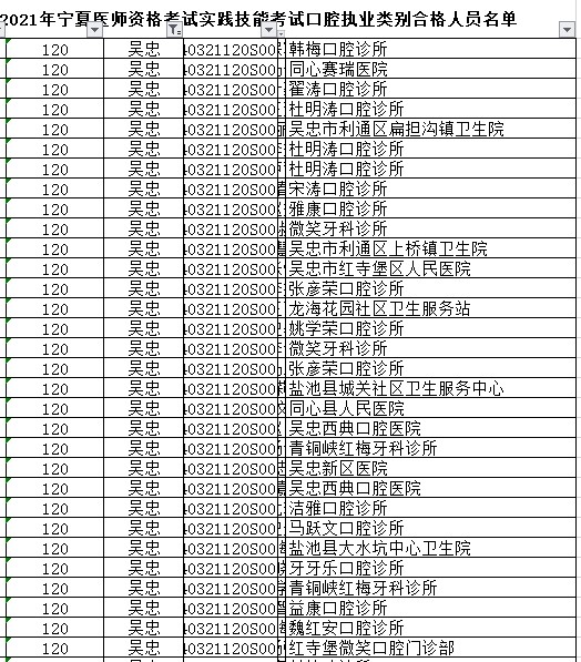吴忠市2021年口腔执业医师120类别医师资格实践技能合格名单发布,很多考生想知道自己是否通过技能考试,医学教育网编辑为您整理2021年吴忠市考点口腔执业医师类别实践技能考试合格名单如下。