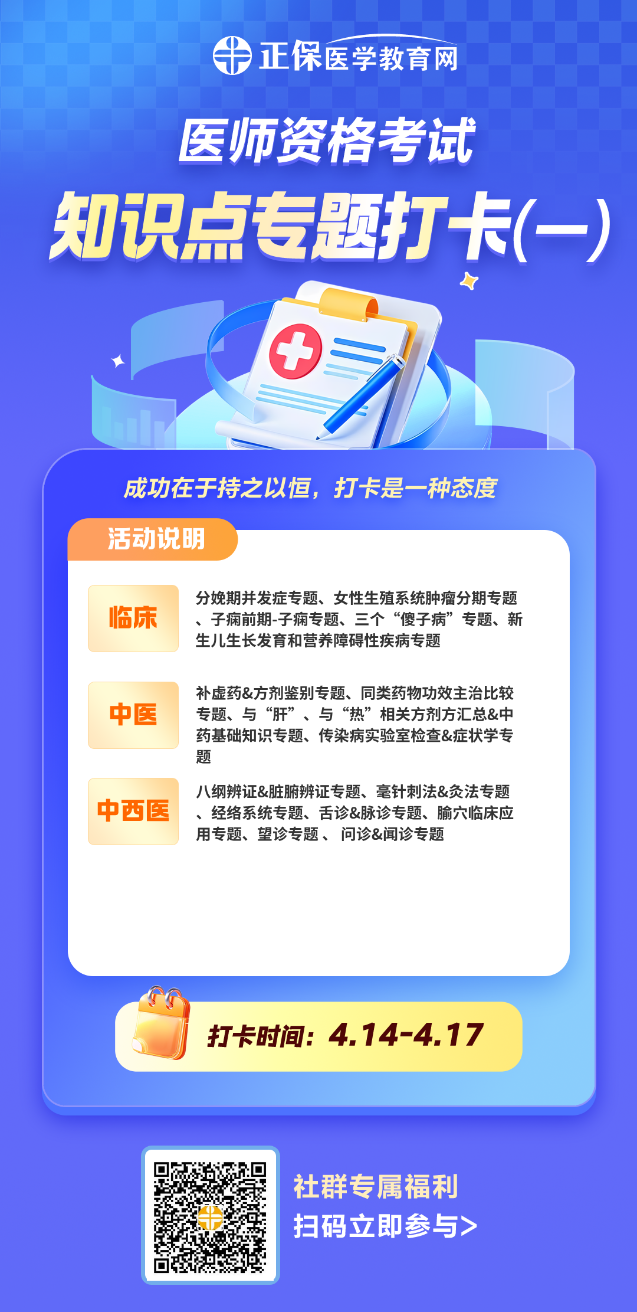 为了帮助考生们更好地应对这一挑战,正保医学教育网精心策划并推出了2025医师资格笔试知识点专题打卡活动。针对各科目中的考点难点设计的强化训练,让你在平时复习的同时,更好地吸收和巩固相关知识点。持之以恒,让你每天都有进步!