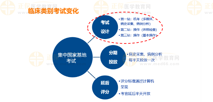 原先病史采集和病例分析为现场发放纸质答题卡,现在是电脑抽题,纸上作答。之前实践技能考试采取就近安排的原则,可能在自己熟悉的医院考试,有可能碰到的考官是熟人,而在基地考试后,是国家统一的规范和要求,基地可能是在别的市,考试的地点不是自己熟悉的城市,标准化病人技术、考试内容、考试设计更规范!