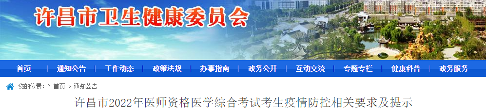 新冠肺炎疫情防控工作将根据疫情形势适时调整,请广大考生持续关注许昌市疫情防控政策和许昌市卫生健康委员会官网发布的相关考试信息,严格按照防疫要求,提前做好考前准备工作。