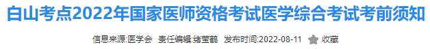 白山考点2022年国家医师资格考试医学综合考试考前须知,医学教育网老师为大家整理总结如下,希望可以帮助到各位: