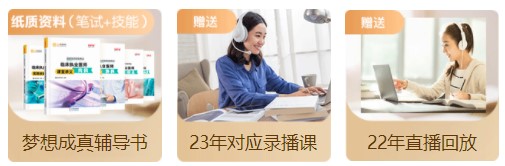 3、课程纸质资料有医学教育网梦想成真辅导书;赠送2022年对应直播课回放、2023年对应网络课;