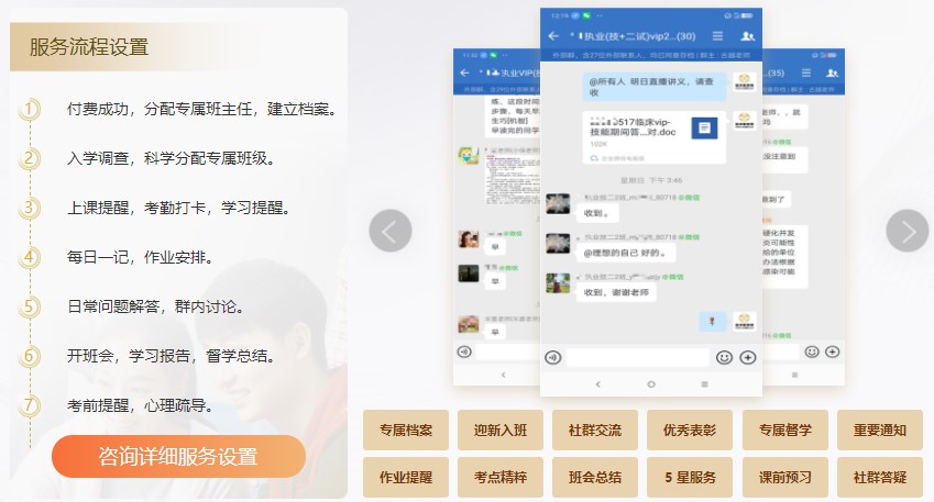 8、VIP课程提供小班教学服务,除了专业老师还会有教辅老师在群内为大家答疑解惑,提供上课提醒,考勤打卡,学习提醒、每日一记,作业安排、及时督学等服务。
