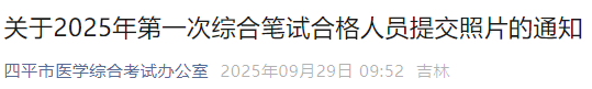 与证书相关!吉林四平2025年医师资格一试合格考生速去提交照片!2025年10月20日截止,应该是跟证书制证相关,请相关考生及时查看官方通知,按时提交。