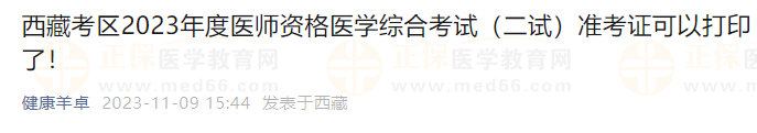 重要提醒!西藏考区2023年度医师资格医学综合考试(二试)准考证可以打印了!请相关考生及时打印二试准考证,提前确认考场考点安排,做好应试准备!预祝各位考生二试顺利通过!