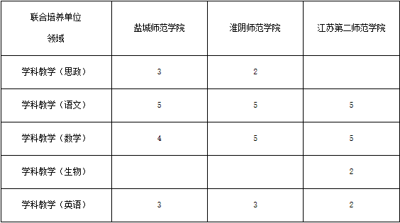 第三十九条 与江苏警官学院、盐城师范学院、江苏第二师范学院、淮阴师范学院、南瑞集团等单位联合培养硕士研究生的相关专业和计划等详见招生专业目录。其中教师教育学院与有关单位联合培养的教育硕士不按方向招生,不单独划线,实行统一招生、统一划线、统一录取,录取阶段学校将根据学生综合成绩排序情况和本人志愿,综合确定联合培养学生名单,志愿未能满足且不服从学校安排的将不予录取。具体拟招生计划如下表所示。