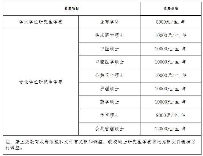 2.根据《关于继续执行我省研究生教育收费政策及有关问题的通知》(川发改价格[2019]357号)文件规定,我校硕士研究生学费执行如下: