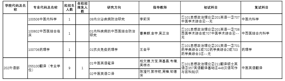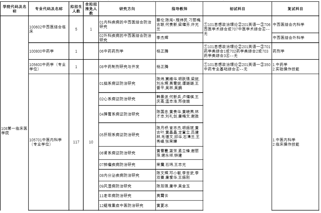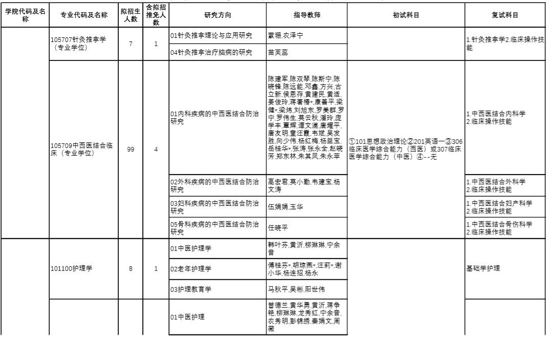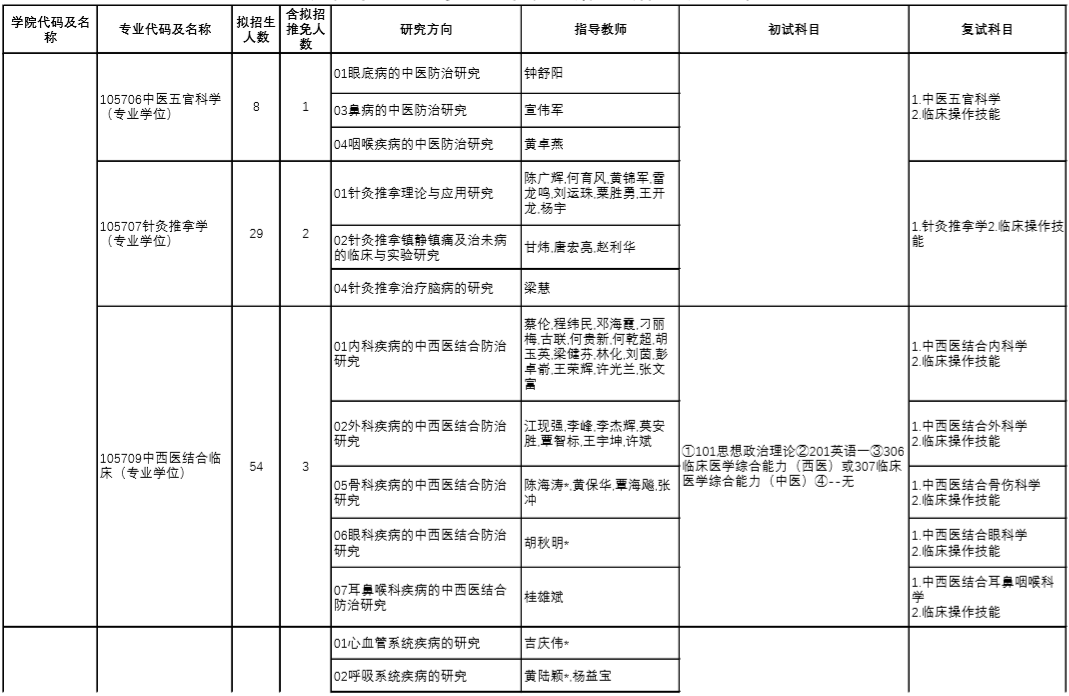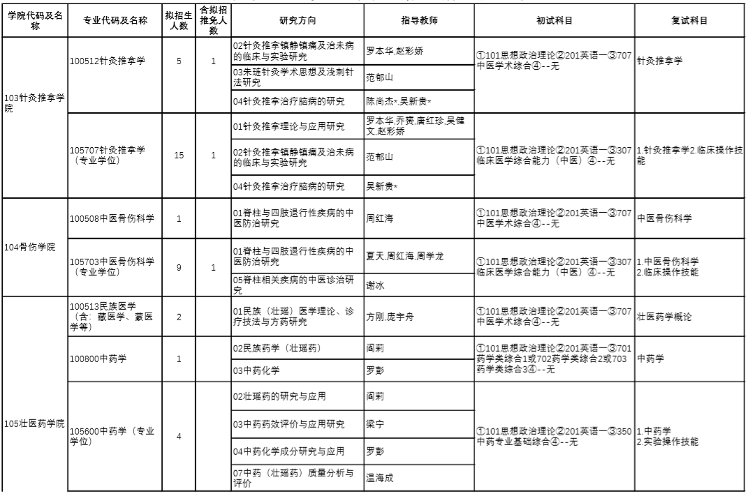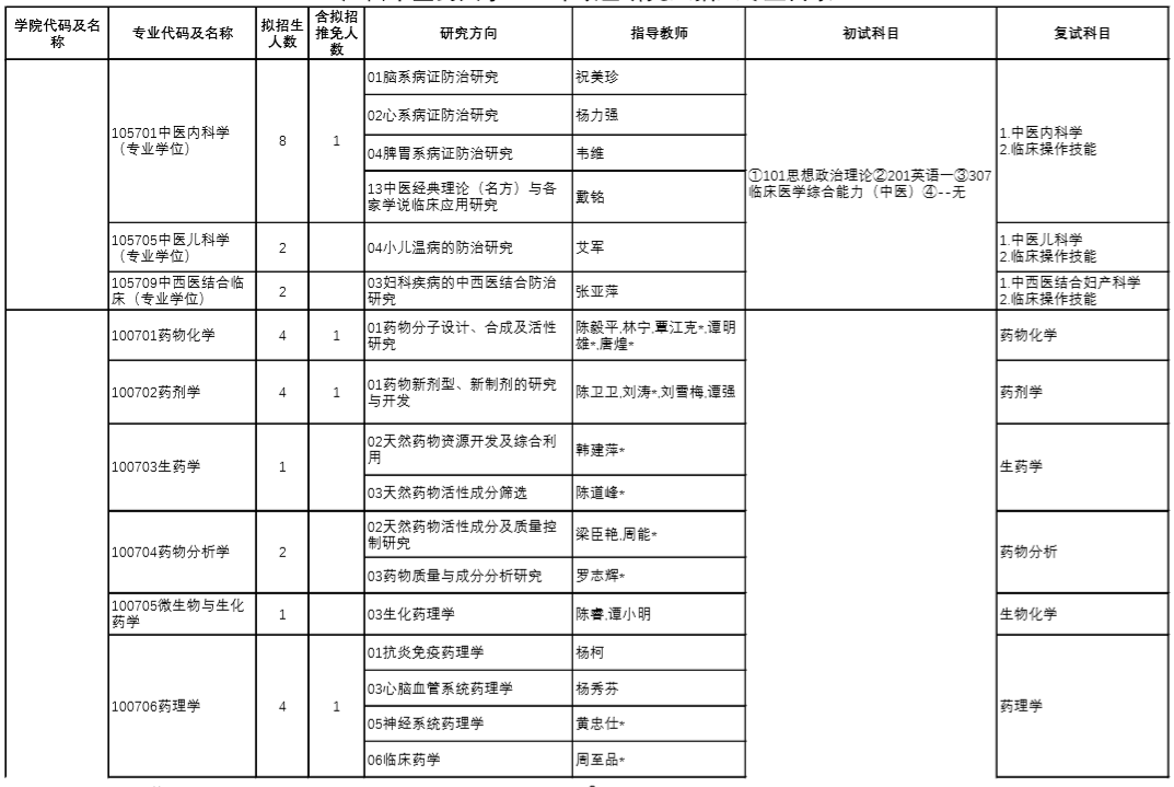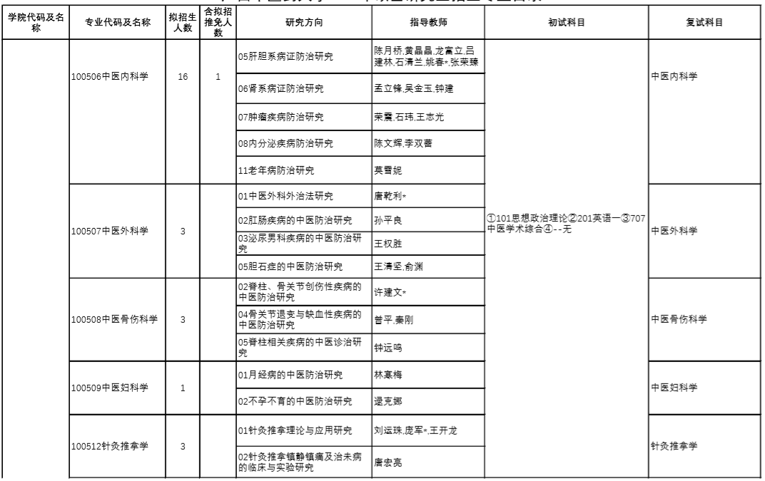 | 12 | 100512/105707 | 针灸推拿学 | 中医诊断学、方剂学 |
