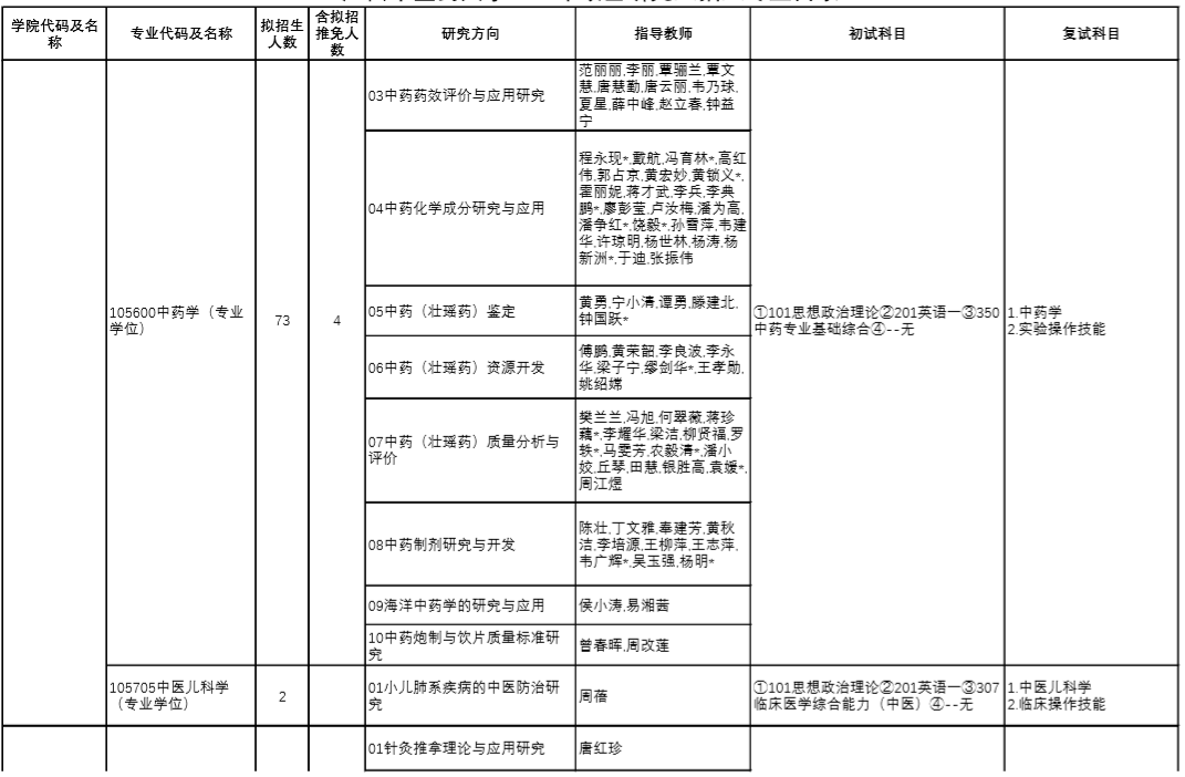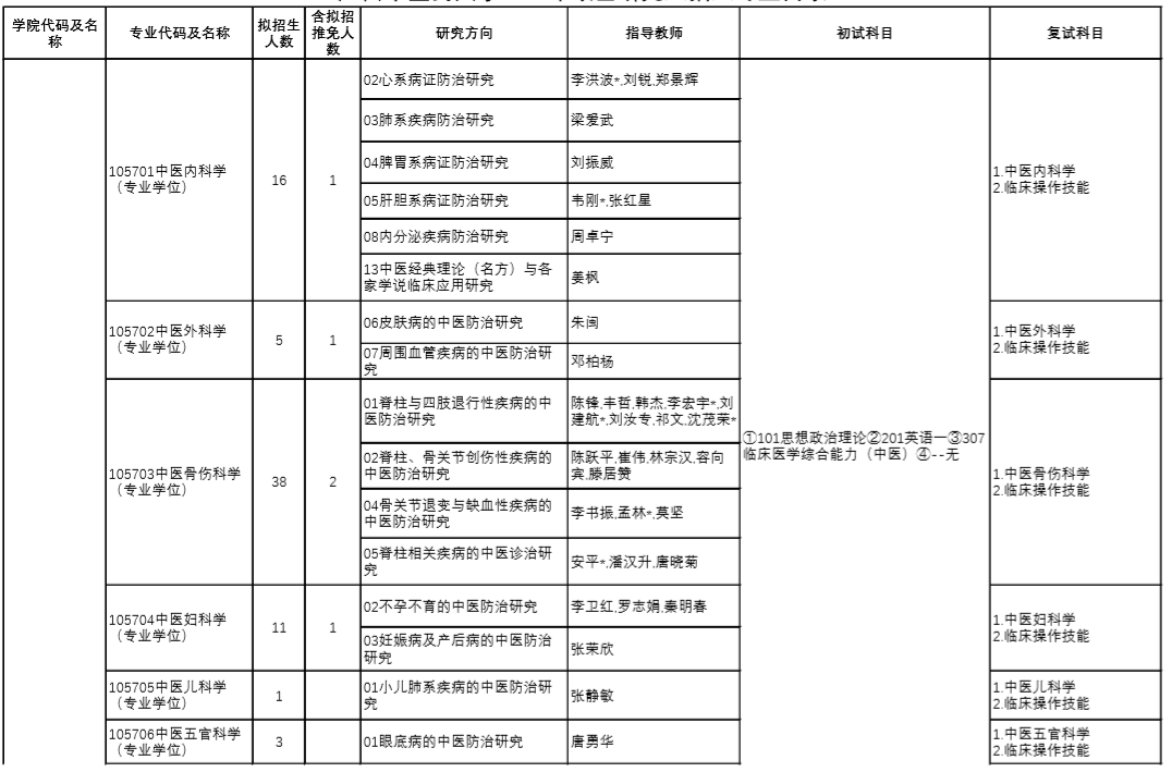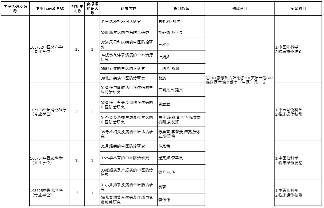 | 10 | 105705 | 中医儿科学 | 中医诊断学、方剂学 |