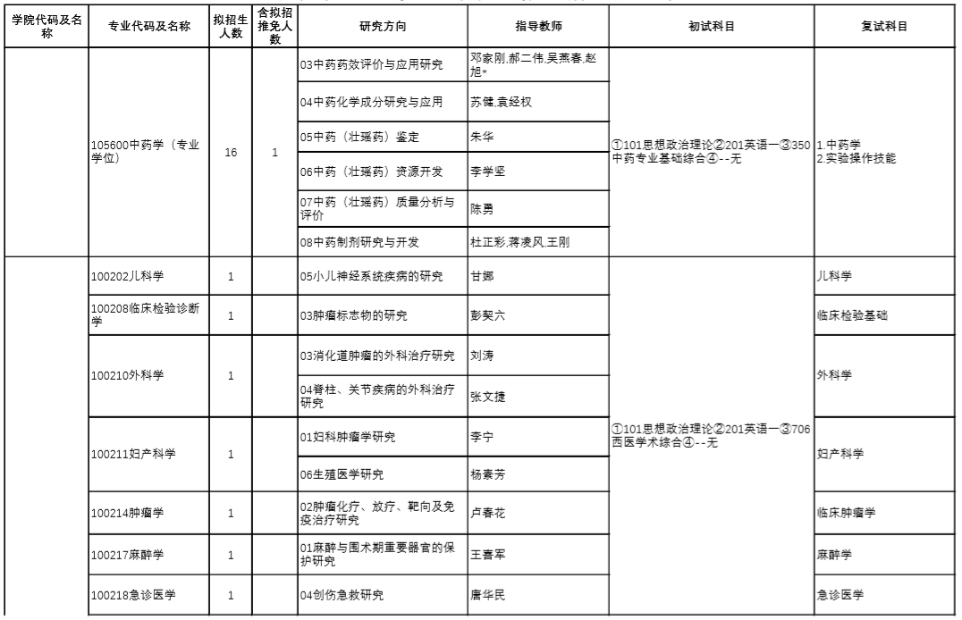 点击查看:2021年广西中医药大学硕士研究生招生章程及专业目录