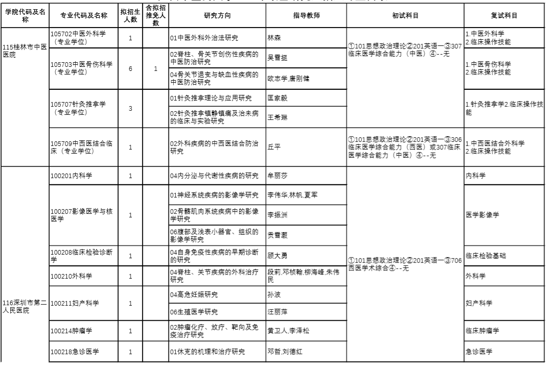 广西中医药大学硕士研究生招生专业加试科目表