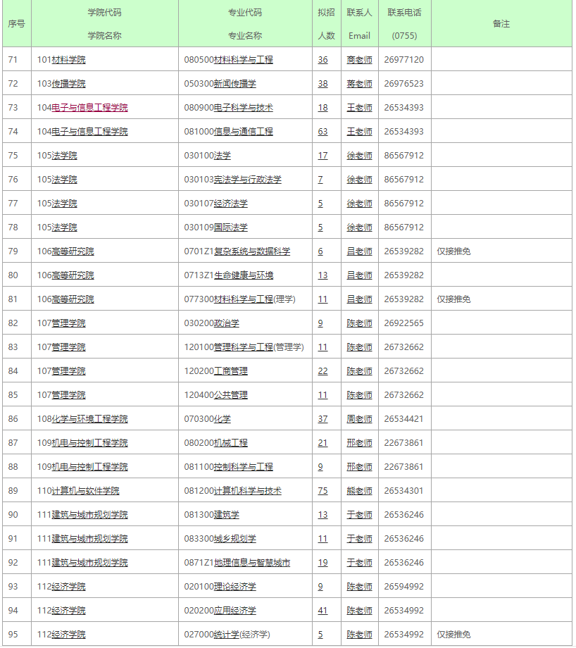 表中拟招人数仅供参考,最后录取以教育部实际下达招生人数为准。除非全日制的工商管理、公共管理、教育管理不招收推免生外,其他专业均招收推免生。拟招人数含推免人数,我校将在统考报名结束前公布实际接收推免数及可用于统考指标。