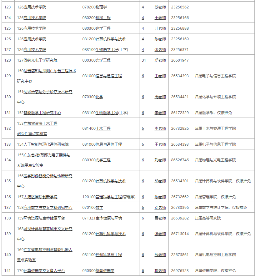 5、首次公布的专业目录拟招人数不含与其他实验室、基地等联合培养招生计划,待教育部下达最终招生指标后,新增的理工类全日制专业学位招生指标将含有少量人工智能与数字经济广东省实验室(深圳)、松山湖实验室、季华实验室等科教融合项目和东莞基地、中山基地产教融合项目等联合培养计划,师范学院新增的全日制专业学位招生指标含与韩山师范学院联合培养计划。