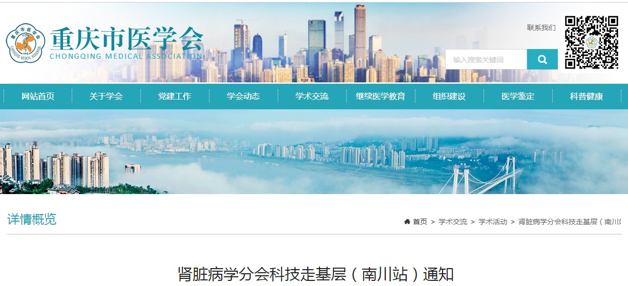 重庆市医学会肾脏病学分会科技走基层(南川站)通知