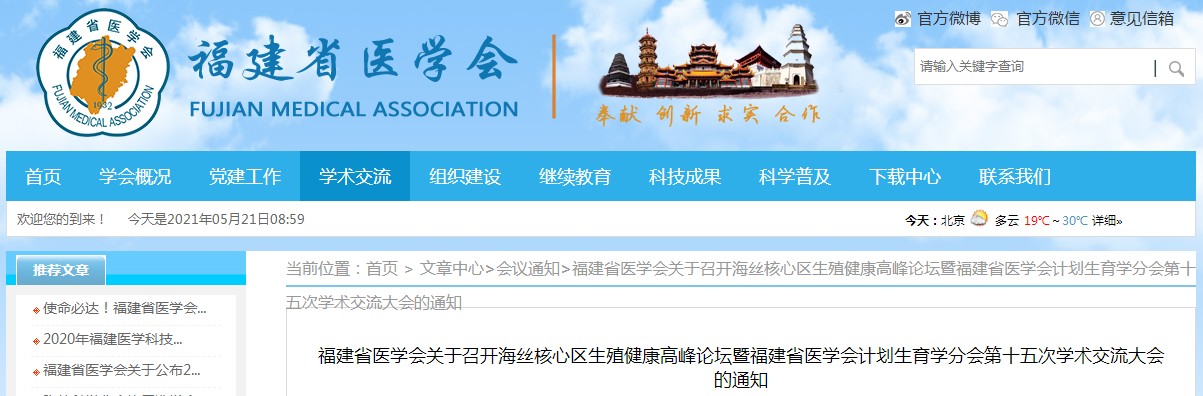 福建省医学会计划生育学分会第十五次学术交流大会通知