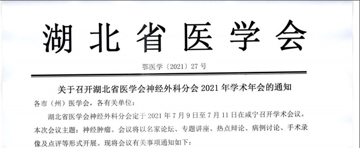 湖北省医学会神经外科分会2021年学术年会通知