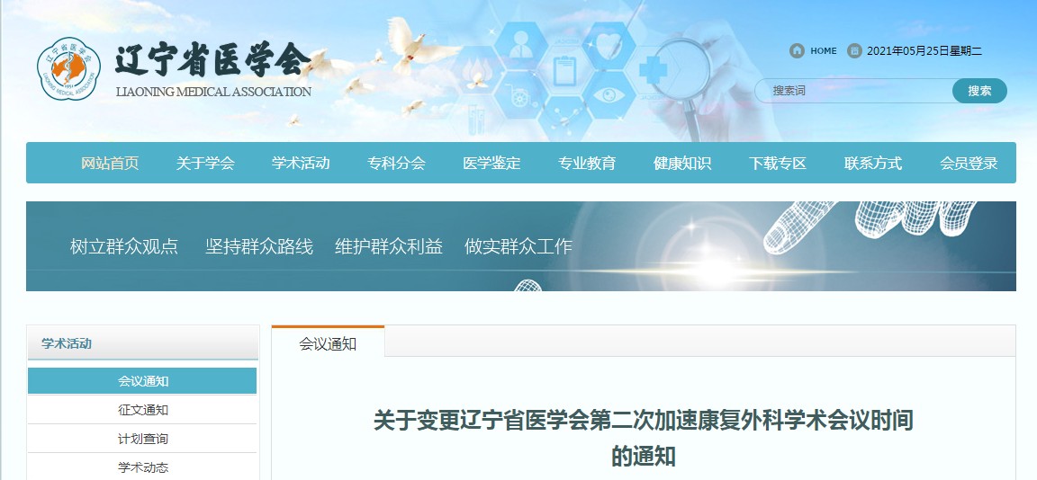 关于变更辽宁省医学会第二次加速康复外科学术会议时间的通知